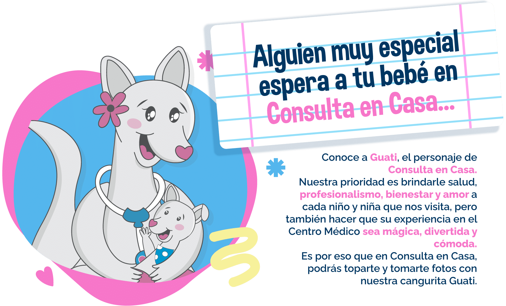 Es por eso que en Consulta en Casa, podrás toparte y tomarte fotos con nuestra cangurita Guati.